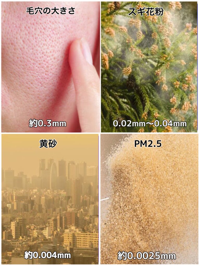 PM2.5は黄砂の半分サイズで、約0.0025mm。